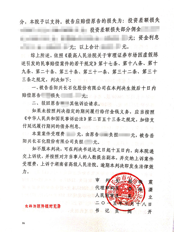 湖南省高级人民法院终审判决岳阳兴长应对投资者承担民事赔偿责任,判决书节选如下: