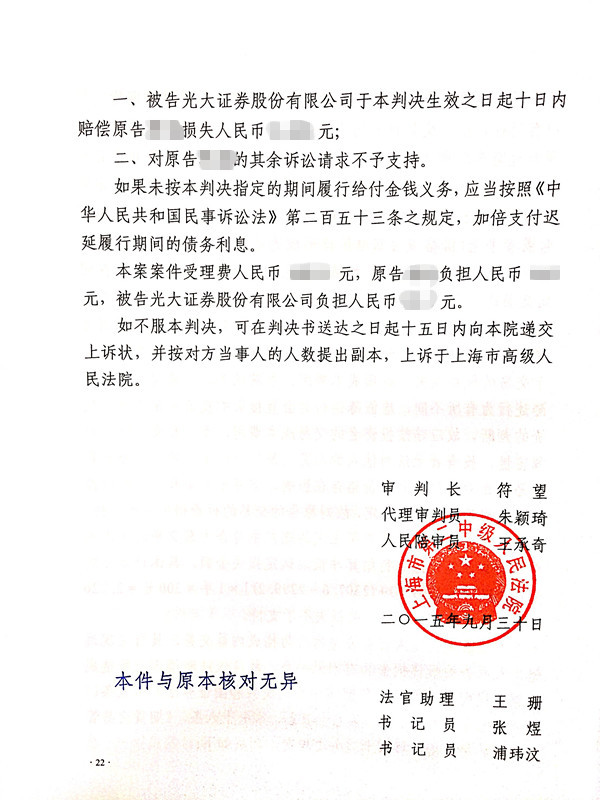 随后,王智斌律师代理多位股指期货及成分股投资者向光大证券提起民事索赔诉讼,案件历经近2年时间,终于于2015年9月30日获得一审胜诉判决,该判决为我国证券历史中首例内幕交易索赔案胜诉案例。