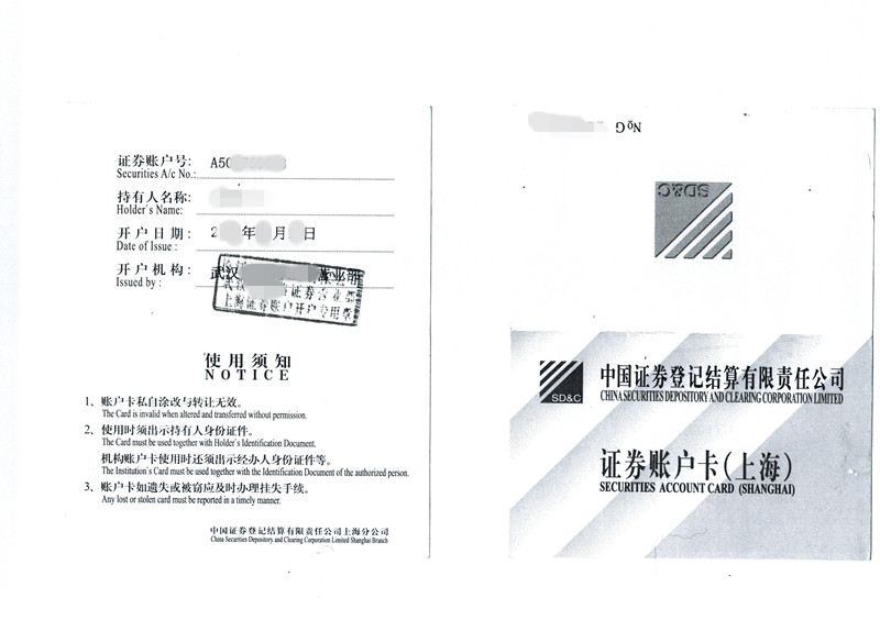 附一:(上海)证券账户卡(正反双面)