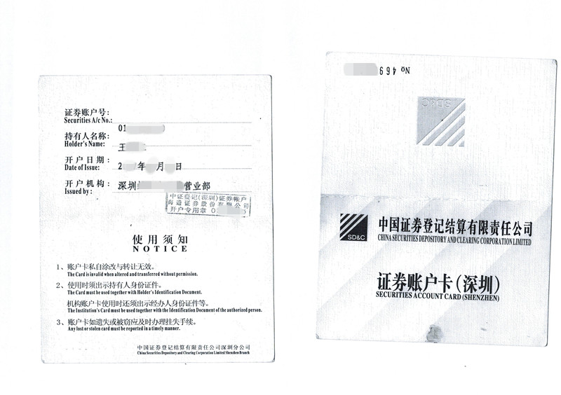 附二:(深圳)证券账户卡(正反双面)