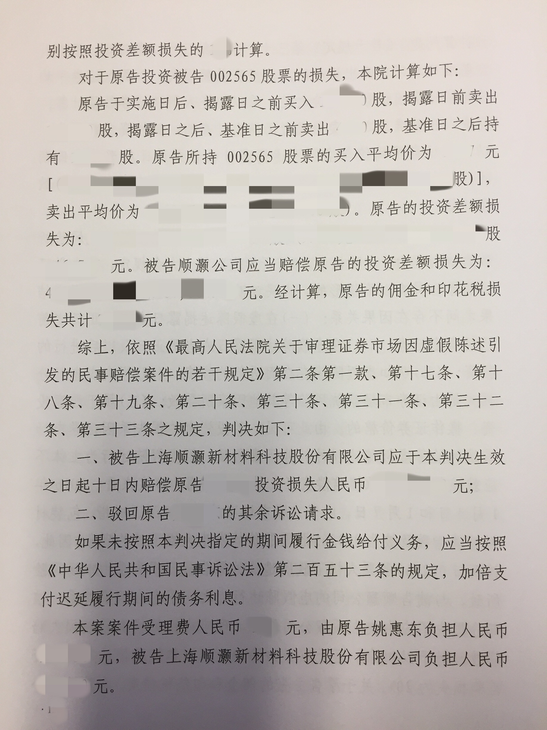 近日收到上海市第二中级人民法院关于上海顺灏(原上海绿新)虚假陈述一案的一审判决,详见以下内容: