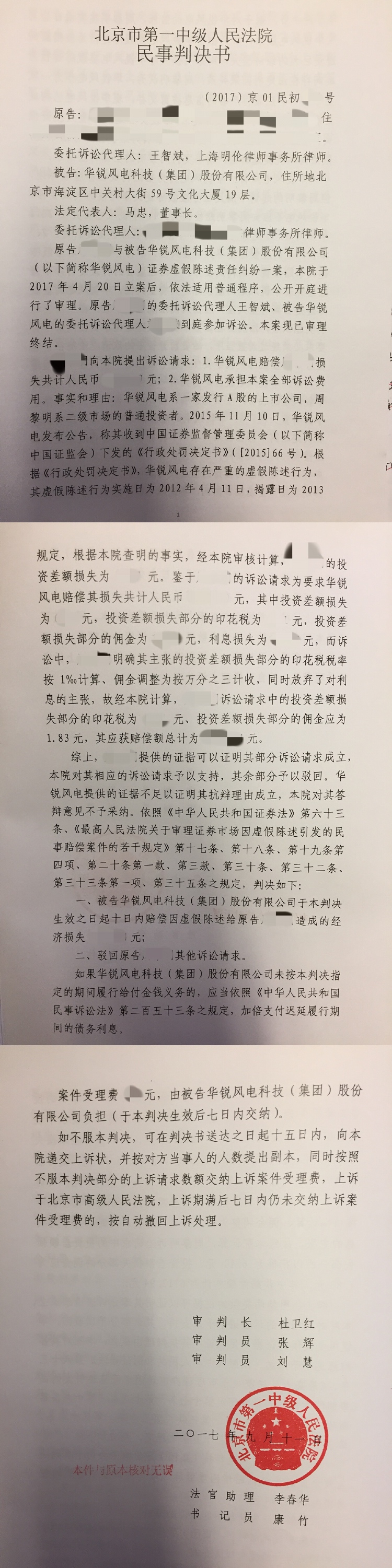 华锐风电(600806)虚假陈述案胜诉