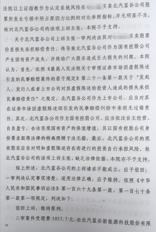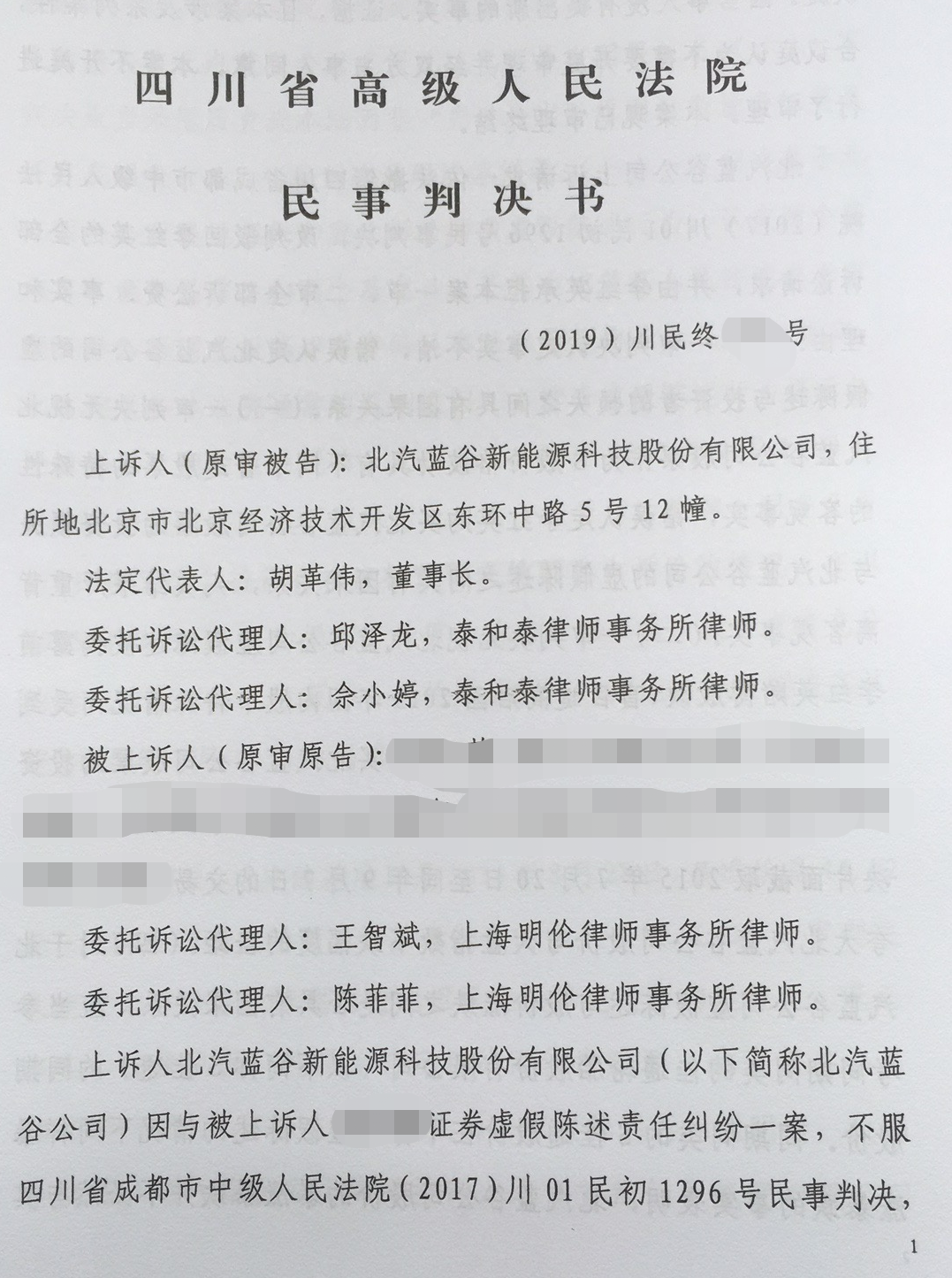 四川省高级人民法院二审驳回S前锋(现名:北汽蓝谷)上诉,维持原判。