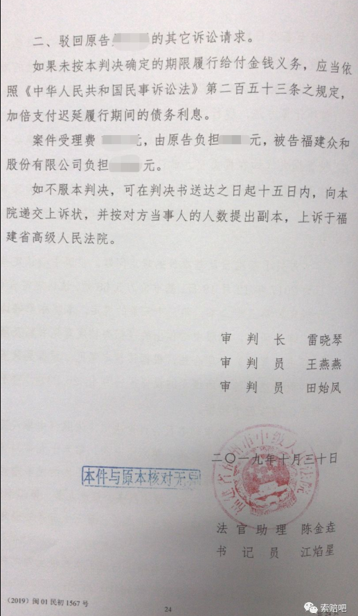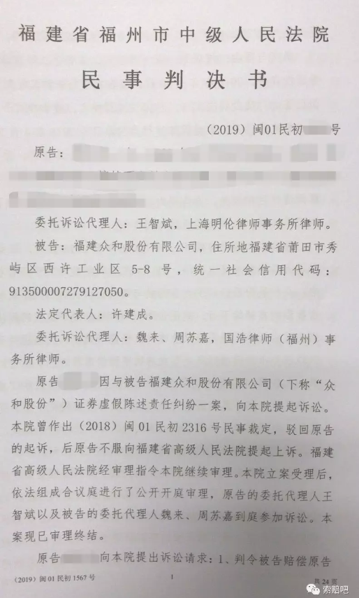 2019年底陆续收到部分众和案的判决书,一审胜诉。