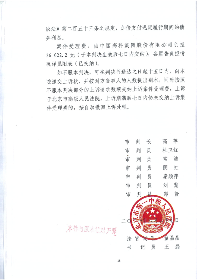 中国高科:一审判决